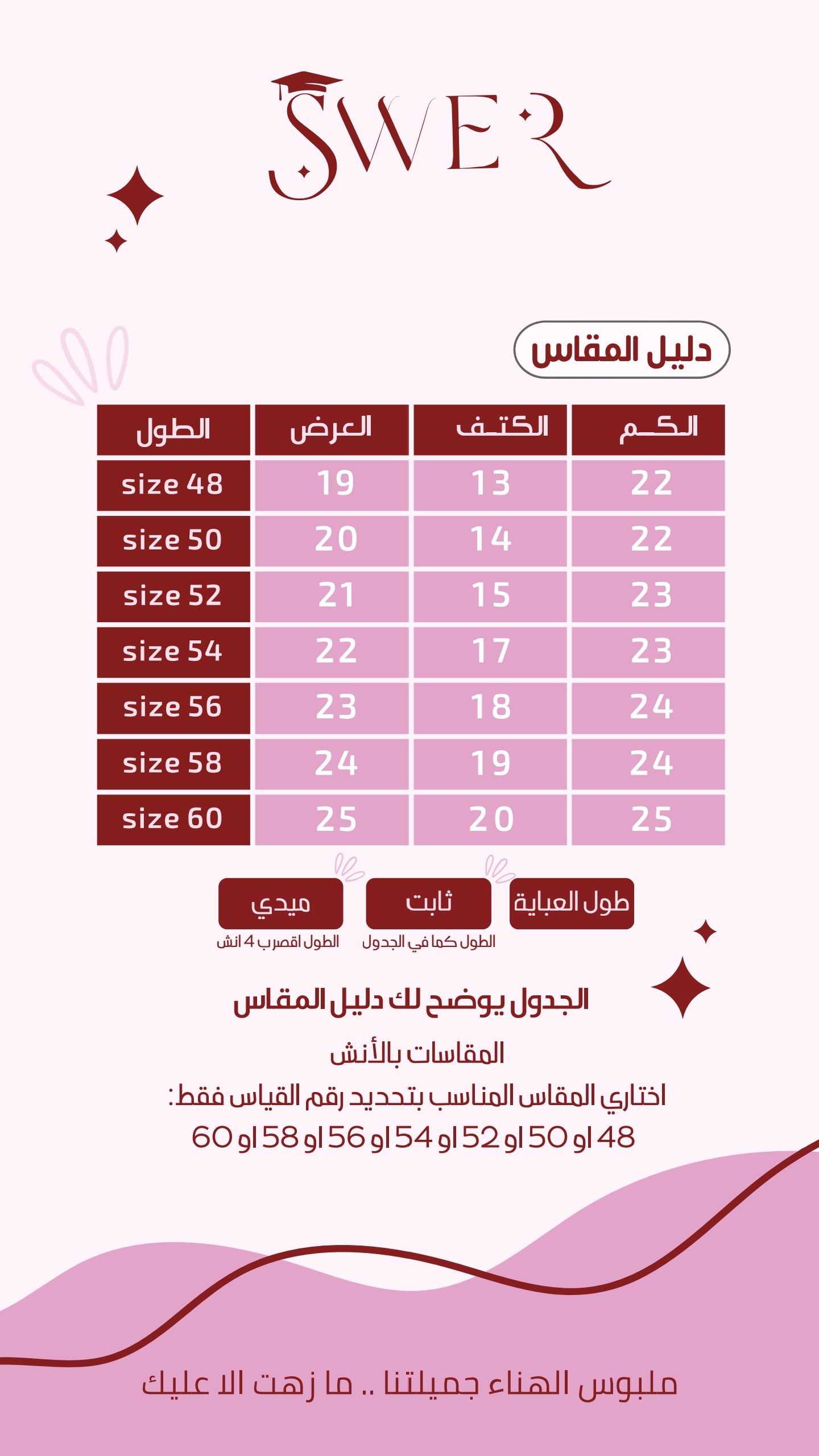 دليل مقاس العبايات